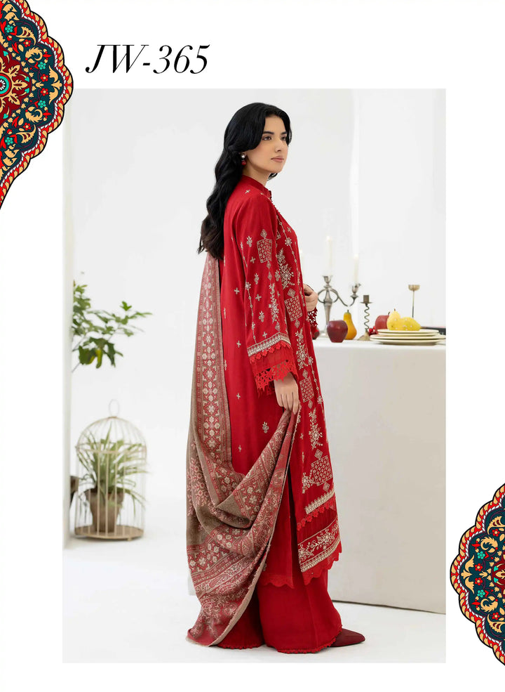 Johra Zeina Embroidered Peach Leather With Pure Jacquard Wool Shawl - JW-365