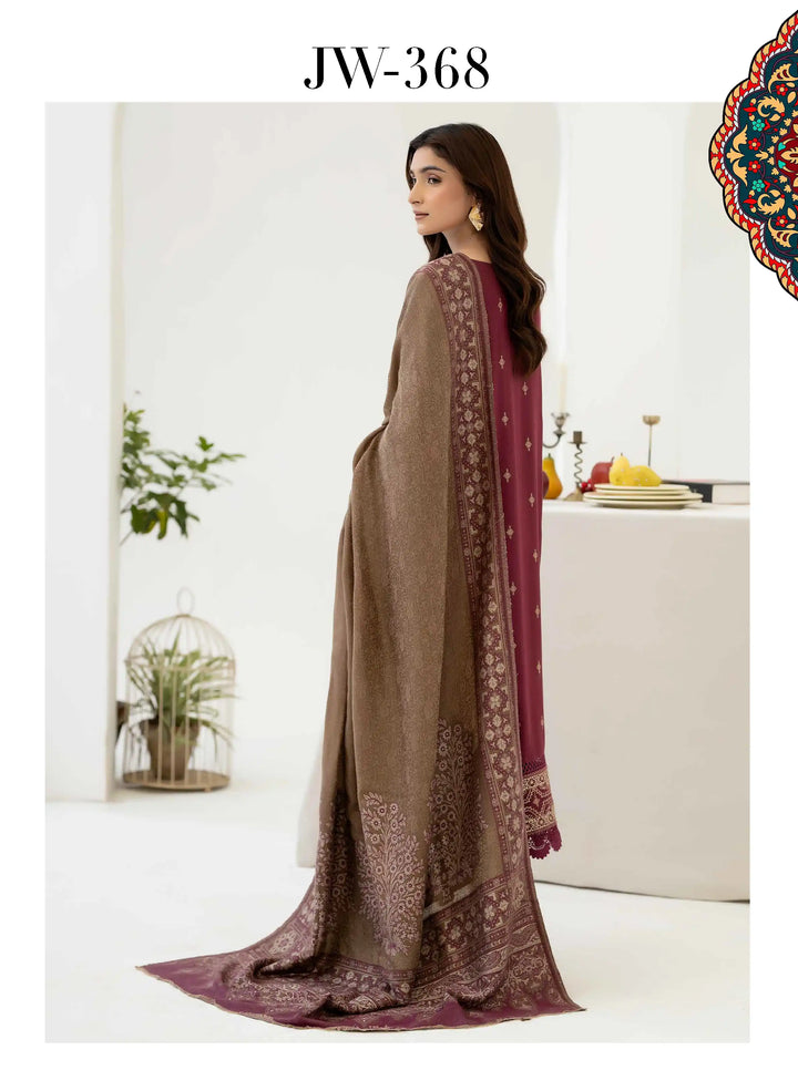 Johra Zeina Embroidered Peach Leather With Pure Jacquard Wool Shawl - JW-368