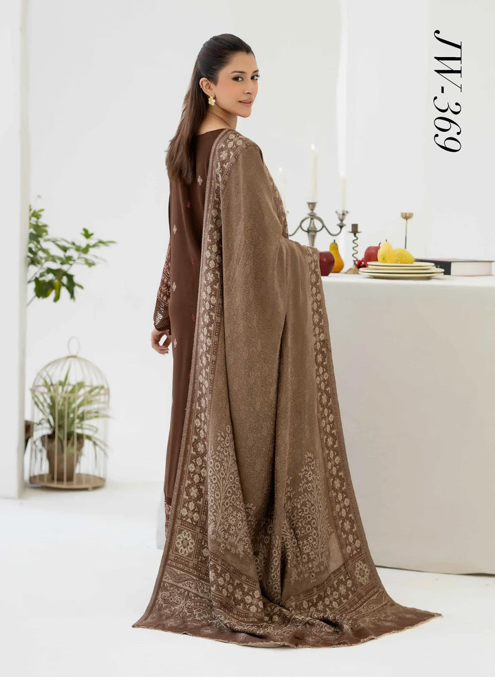 Johra Zeina Embroidered Peach Leather With Pure Jacquard Wool Shawl - JW-369