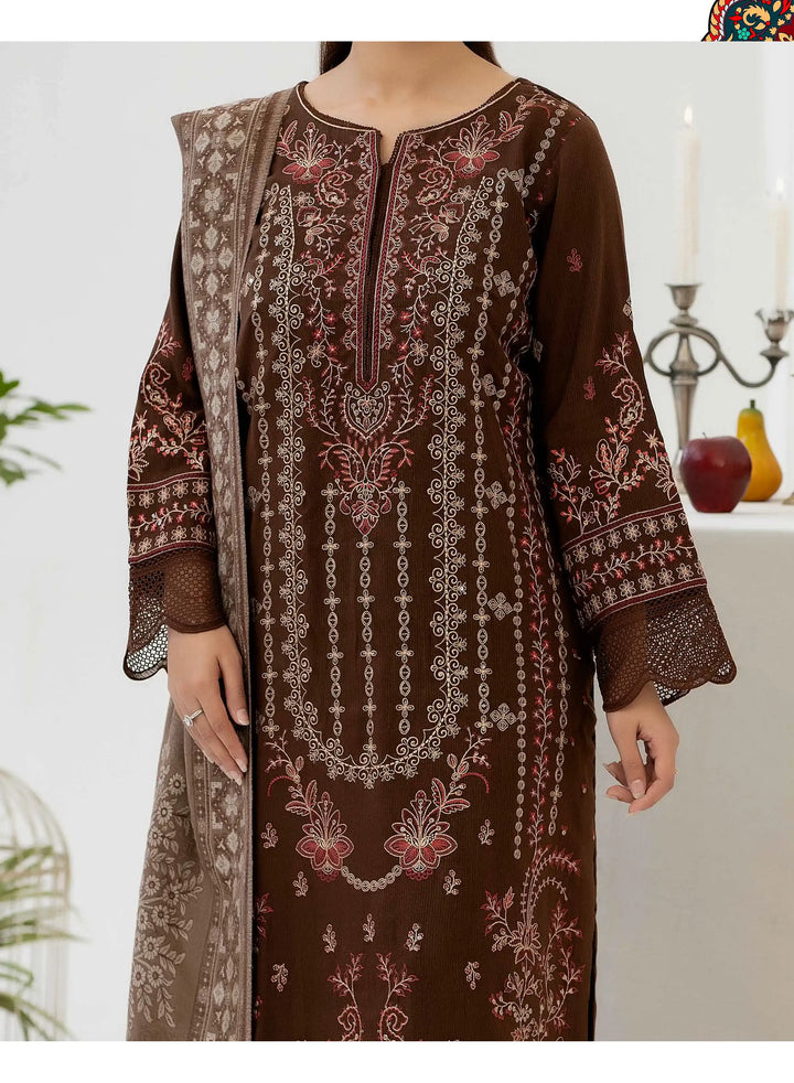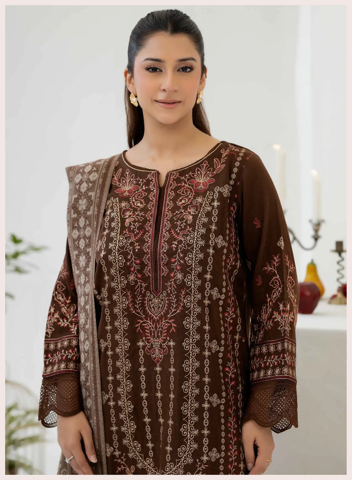 Immerse yourself in timeless sophistication with Johra Zeina, a masterpiece from Johra’s luxurious winter collection. Crafted from premium peach leather fabric, this embroidered ensemble exudes regal elegance with intricate threadwork that highlights refined artistry and grace.