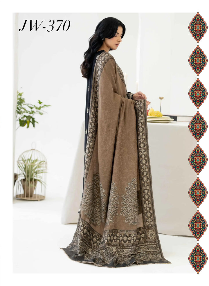Johra Zeina Embroidered Peach Leather With Pure Jacquard Wool Shawl - JW-370