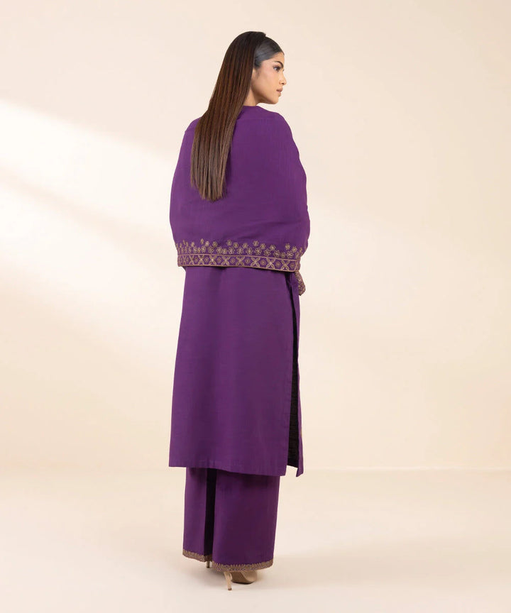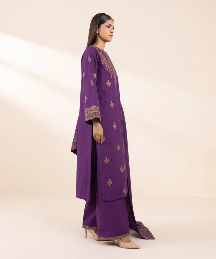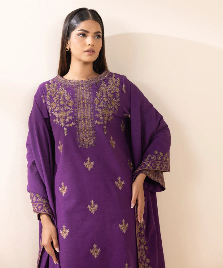 Sapphire 3 Piece - Embroidered Khaddar Suit - U3PEST24V929