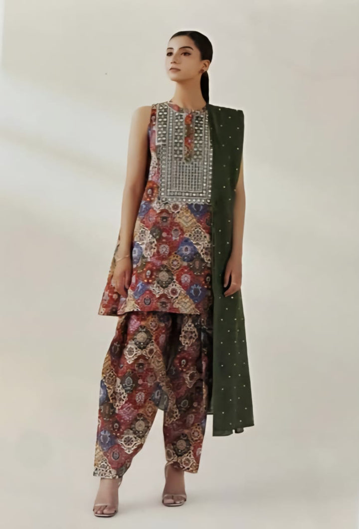 Embroidered Neckline & Sleeves Pachtes 1PC